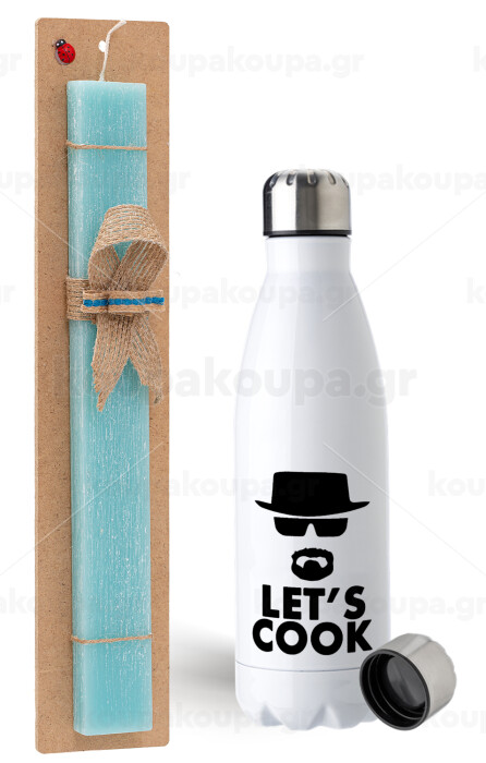 Let's cook, Easter Set, metallic stainless steel water bottle (750ml) & aromatic flat Easter candle (30cm) (TURQUOISE)