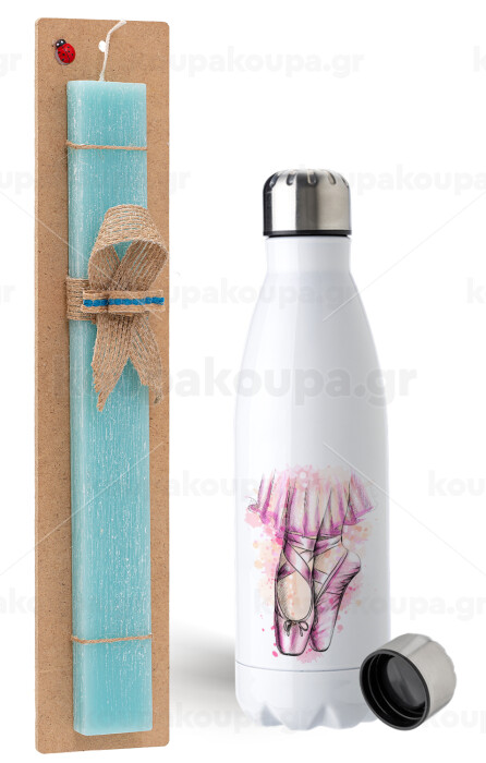 Ballerina shoes, Easter Set, metallic stainless steel water bottle (750ml) & aromatic flat Easter candle (30cm) (TURQUOISE)
