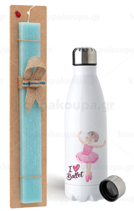 I Love Ballet, Easter Set, metallic stainless steel water bottle (750ml) & aromatic flat Easter candle (30cm) (TURQUOISE)