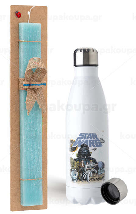 Star Wars, Easter Set, metallic stainless steel water bottle (750ml) & aromatic flat Easter candle (30cm) (TURQUOISE)