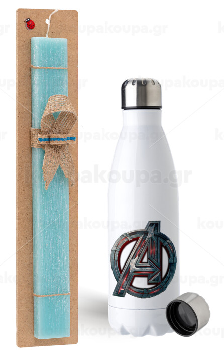 Avengers, Easter Set, metallic stainless steel water bottle (750ml) & aromatic flat Easter candle (30cm) (TURQUOISE)