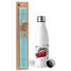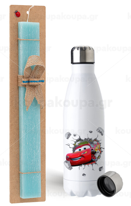 Brick McQueen, Easter Set, metallic stainless steel water bottle (750ml) & aromatic flat Easter candle (30cm) (TURQUOISE)