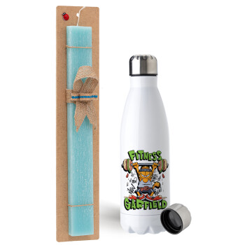 Garfield Fitness, Easter Set, metallic stainless steel water bottle (750ml) & aromatic flat Easter candle (30cm) (TURQUOISE)