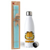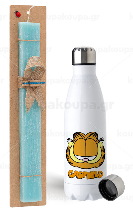 Garfield, Easter Set, metallic stainless steel water bottle (750ml) & aromatic flat Easter candle (30cm) (TURQUOISE)