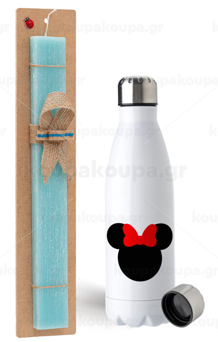 Minnie head, Easter Set, metallic stainless steel water bottle (750ml) & aromatic flat Easter candle (30cm) (TURQUOISE)