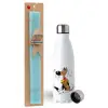 Rantanplan, Easter Set, metallic stainless steel water bottle (750ml) & aromatic flat Easter candle (30cm) (TURQUOISE)