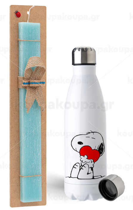 Snoopy, Easter Set, metallic stainless steel water bottle (750ml) & aromatic flat Easter candle (30cm) (TURQUOISE)