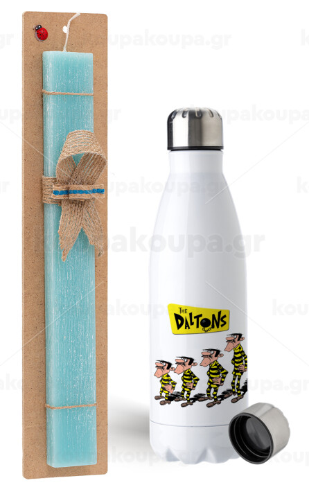 The Daltons, Easter Set, metallic stainless steel water bottle (750ml) & aromatic flat Easter candle (30cm) (TURQUOISE)