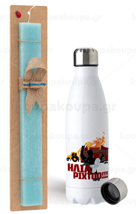 Ηλία ρίχτοοο!!!, Easter Set, metallic stainless steel water bottle (750ml) & aromatic flat Easter candle (30cm) (TURQUOISE)