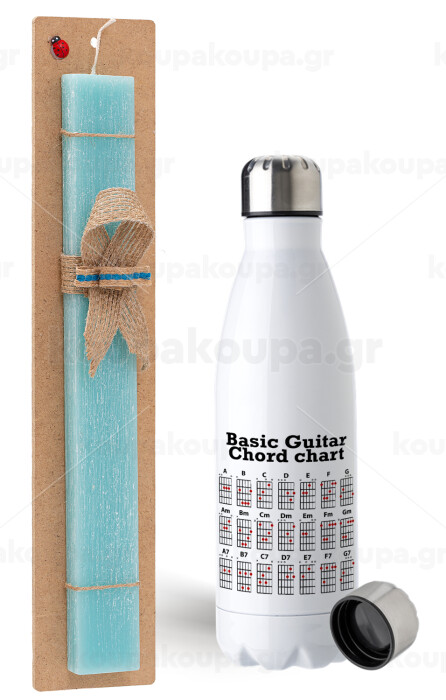 Guitar tabs, Easter Set, metallic stainless steel water bottle (750ml) & aromatic flat Easter candle (30cm) (TURQUOISE)