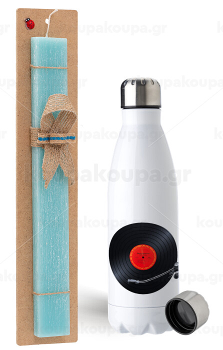 Columbia records bruce springsteen, Easter Set, metallic stainless steel water bottle (750ml) & aromatic flat Easter candle (30cm) (TURQUOISE)