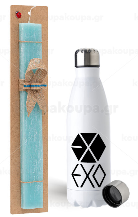 EXO Band korea, Easter Set, metallic stainless steel water bottle (750ml) & aromatic flat Easter candle (30cm) (TURQUOISE)