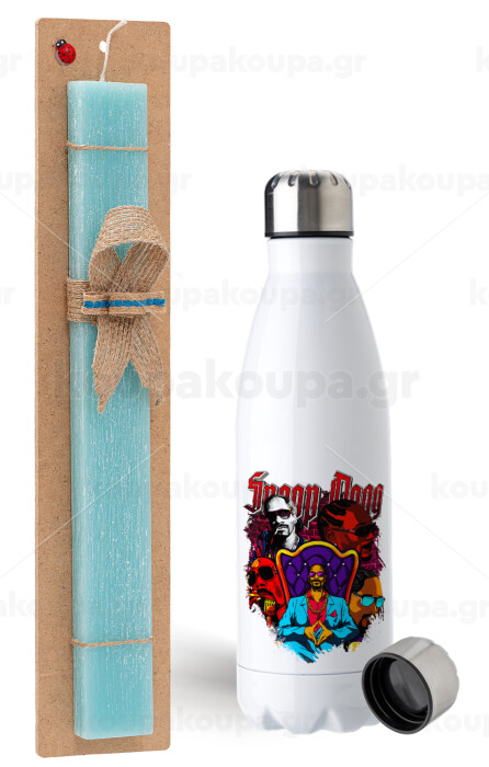 Snoop Dogg, Easter Set, metallic stainless steel water bottle (750ml) & aromatic flat Easter candle (30cm) (TURQUOISE)