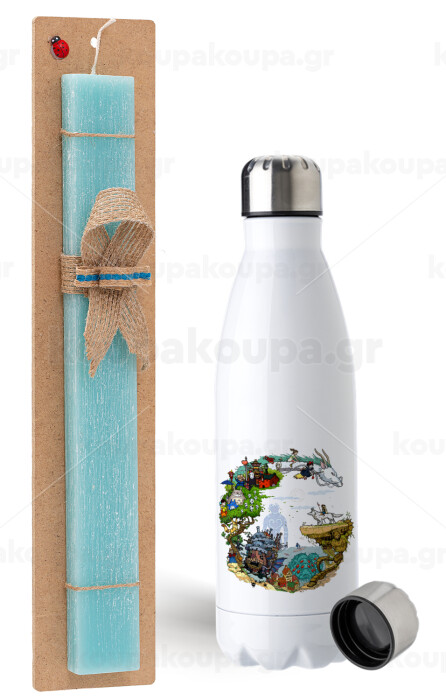 Στούδιο Γκίβλι, Easter Set, metallic stainless steel water bottle (750ml) & aromatic flat Easter candle (30cm) (TURQUOISE)