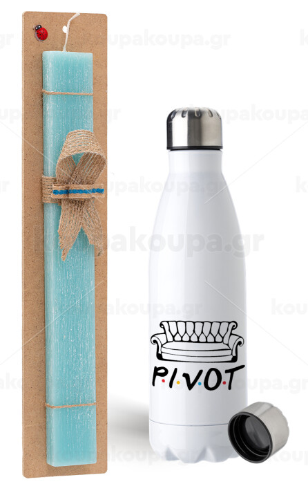 Friends Pivot, Easter Set, metallic stainless steel water bottle (750ml) & aromatic flat Easter candle (30cm) (TURQUOISE)