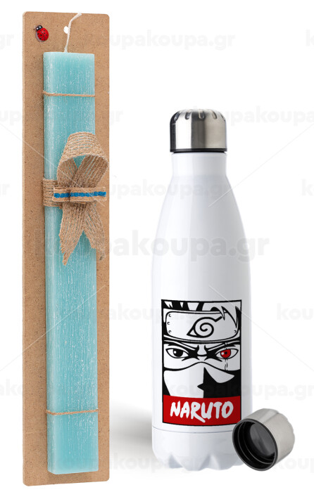 Naruto anime, Easter Set, metallic stainless steel water bottle (750ml) & aromatic flat Easter candle (30cm) (TURQUOISE)