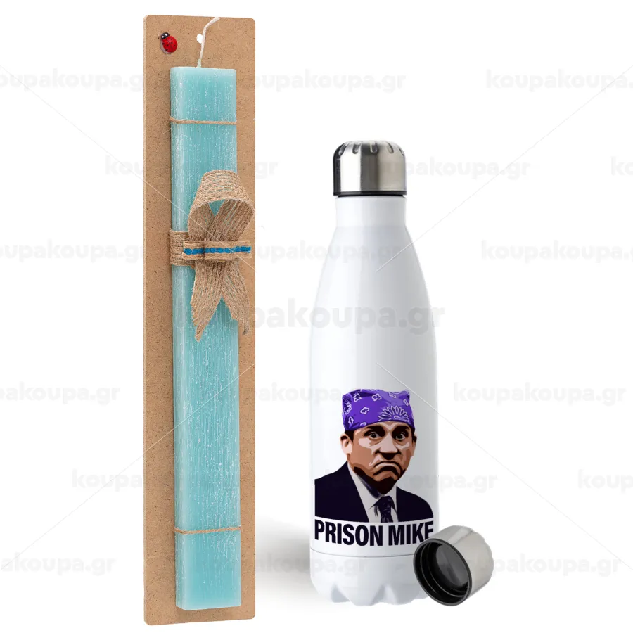 Prison Mike The office, Easter Set, metallic stainless steel water bottle (750ml) & aromatic flat Easter candle (30cm) (TURQUOISE)