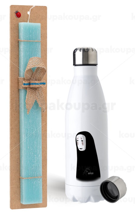 Spirited Away No Face, Easter Set, metallic stainless steel water bottle (750ml) & aromatic flat Easter candle (30cm) (TURQUOISE)