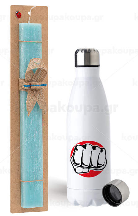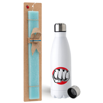 Punch, Easter Set, metallic stainless steel water bottle (750ml) & aromatic flat Easter candle (30cm) (TURQUOISE)