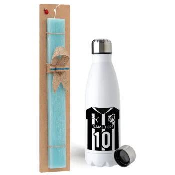 ΟΦΗ εμφάνιση, Easter Set, metallic stainless steel water bottle (750ml) & aromatic flat Easter candle (30cm) (TURQUOISE)