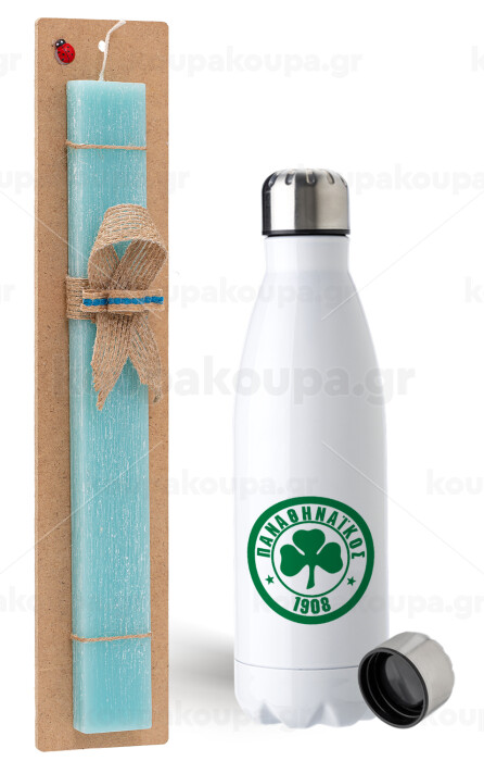 ΠΑΟ Παναθηναϊκός, Easter Set, metallic stainless steel water bottle (750ml) & aromatic flat Easter candle (30cm) (TURQUOISE)