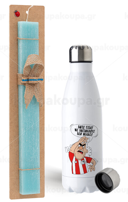 Τάκης, Άντε γεια, με ανώμαλους δεν μιλάω!, Easter Set, metallic stainless steel water bottle (750ml) & aromatic flat Easter candle (30cm) (TURQUOISE)
