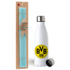 BVB Dortmund, Easter Set, metallic stainless steel water bottle (750ml) & aromatic flat Easter candle (30cm) (TURQUOISE)