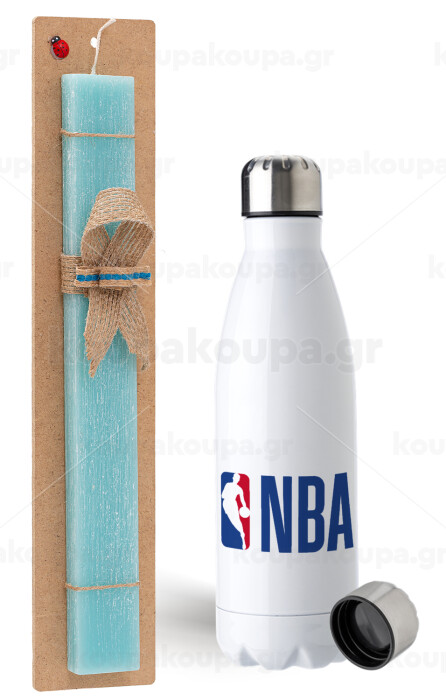 NBA Classic, Easter Set, metallic stainless steel water bottle (750ml) & aromatic flat Easter candle (30cm) (TURQUOISE)