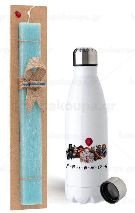 Halloween Friends, Easter Set, metallic stainless steel water bottle (750ml) & aromatic flat Easter candle (30cm) (TURQUOISE)