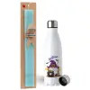 Happy Halloween (Χαλοουίν), Easter Set, metallic stainless steel water bottle (750ml) & aromatic flat Easter candle (30cm) (TURQUOISE)