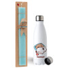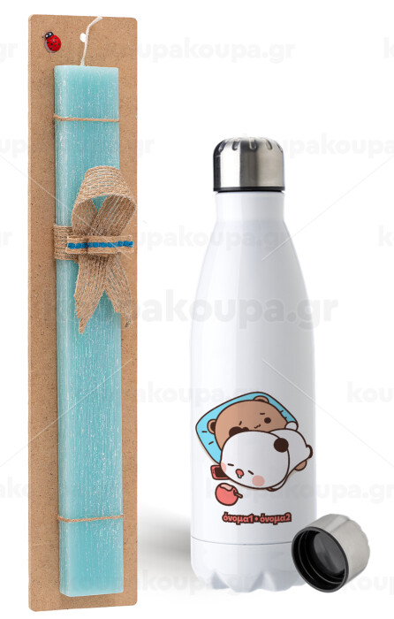 bubu + dudu, Easter Set, metallic stainless steel water bottle (750ml) & aromatic flat Easter candle (30cm) (TURQUOISE)