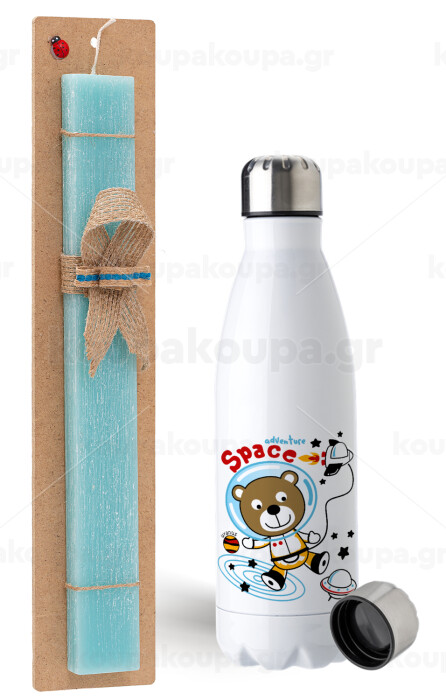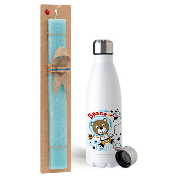 Kids Space, Easter Set, metallic stainless steel water bottle (750ml) & aromatic flat Easter candle (30cm) (TURQUOISE)