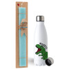 Dyno roar!!!, Easter Set, metallic stainless steel water bottle (750ml) & aromatic flat Easter candle (30cm) (TURQUOISE)