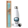 Among US SUS!!!, Easter Set, metallic stainless steel water bottle (750ml) & aromatic flat Easter candle (30cm) (TURQUOISE)