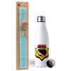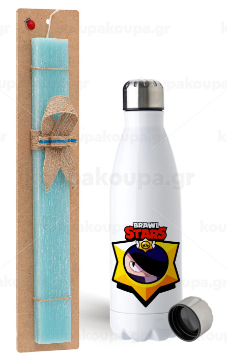 Brawl Stars Edgar, Easter Set, metallic stainless steel water bottle (750ml) & aromatic flat Easter candle (30cm) (TURQUOISE)
