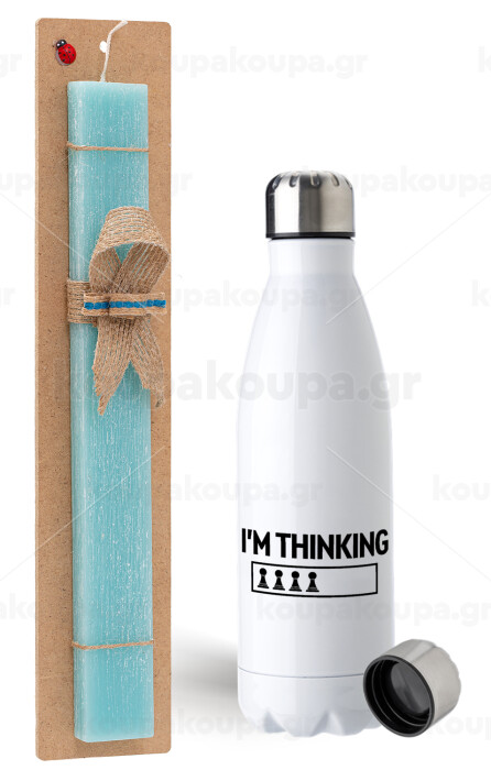 I'm thinking, Easter Set, metallic stainless steel water bottle (750ml) & aromatic flat Easter candle (30cm) (TURQUOISE)