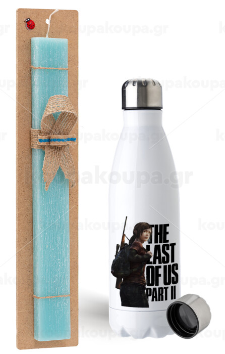 Last of us, Ellie, Easter Set, metallic stainless steel water bottle (750ml) & aromatic flat Easter candle (30cm) (TURQUOISE)