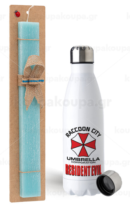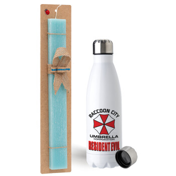 Resident Evil, Easter Set, metallic stainless steel water bottle (750ml) & aromatic flat Easter candle (30cm) (TURQUOISE)