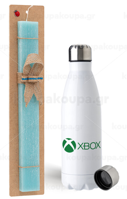 xbox, Easter Set, metallic stainless steel water bottle (750ml) & aromatic flat Easter candle (30cm) (TURQUOISE)