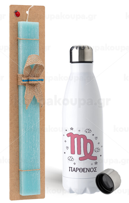 Ζώδια Παρθένος, Easter Set, metallic stainless steel water bottle (750ml) & aromatic flat Easter candle (30cm) (TURQUOISE)