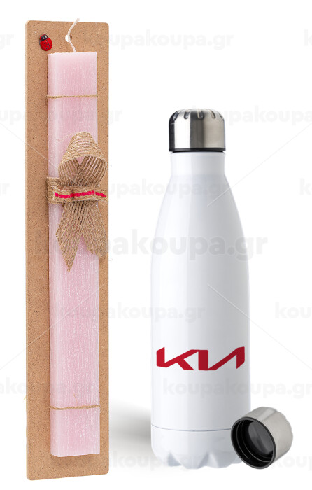 KIA, Easter Set, metallic stainless steel water bottle (750ml) & scented flat Easter candle (30cm) (PINK)
