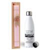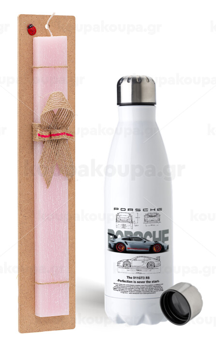 Porsche, Easter Set, metallic stainless steel water bottle (750ml) & scented flat Easter candle (30cm) (PINK)
