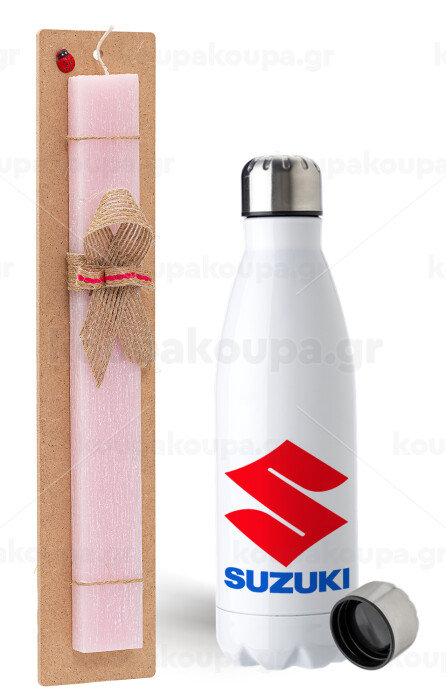 SUZUKI, Easter Set, metallic stainless steel water bottle (750ml) & scented flat Easter candle (30cm) (PINK)