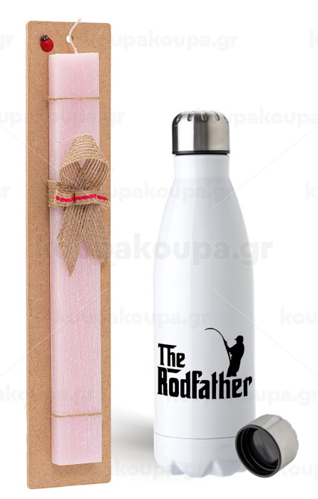 The rodfather, Easter Set, metallic stainless steel water bottle (750ml) & scented flat Easter candle (30cm) (PINK)