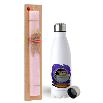 Πασχαλινή Λαμπάδα με μεταλλικό παγούρι ανοξείδωτο (750ml) & κερί αρωματικό πλακέ (30cm) (ΡΟΖ) με θέμα Cinema
