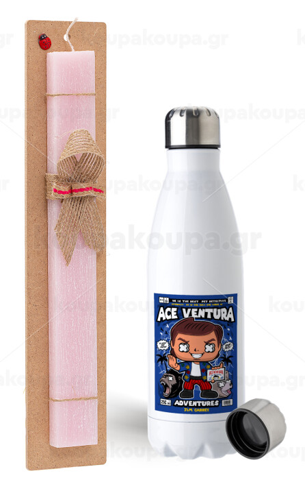 Ace Ventura: Pet Detective, Easter Set, metallic stainless steel water bottle (750ml) & scented flat Easter candle (30cm) (PINK)