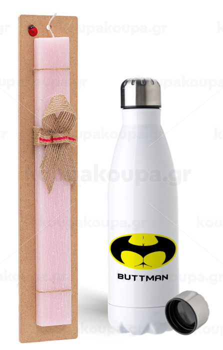 Buttman, Easter Set, metallic stainless steel water bottle (750ml) & scented flat Easter candle (30cm) (PINK)