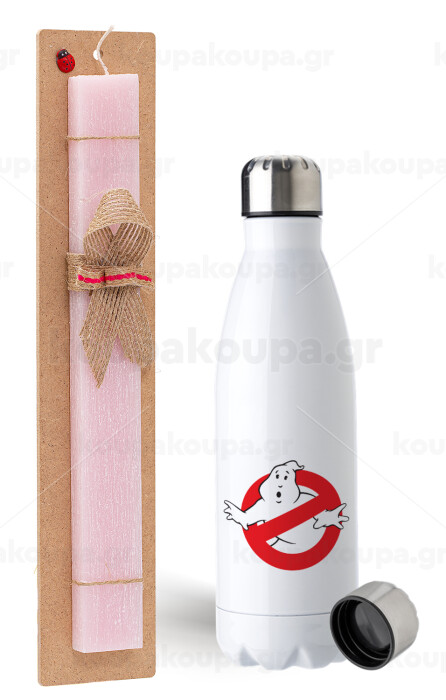 The Ghostbusters, Easter Set, metallic stainless steel water bottle (750ml) & scented flat Easter candle (30cm) (PINK)