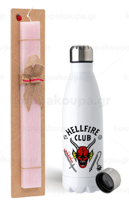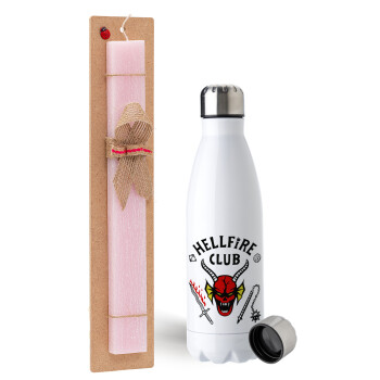 Hellfire CLub, Stranger Things, Easter Set, metallic stainless steel water bottle (750ml) & scented flat Easter candle (30cm) (PINK)