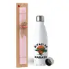 Miyagi-do karate, Easter Set, metallic stainless steel water bottle (750ml) & scented flat Easter candle (30cm) (PINK)